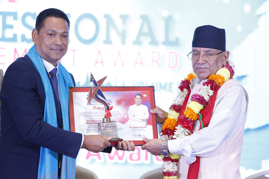 ललितपुरको पुल्चोकस्थित द प्लाजा होटलमा आयोजित एक विशेष कार्यक्रममा नेकपा माओवादी केन्द्रका अध्यक्ष एवम पूर्वप्रधानमन्त्री पुष्पकमल दाहाल, उपसभामुख ईन्दिरा राना मगरलगायतले सम्मान गरेका हुन् । कार्यक्रममा हामा आइरन एन्ड स्टिल इन्डष्ट्रिज प्राइभेट लिमिटेडका अध्यक्ष बालकृष्ण श्रेष्ठ लाईफ टाईम एचिभमेन्ट अवार्डबाट सम्मानित भए ।
